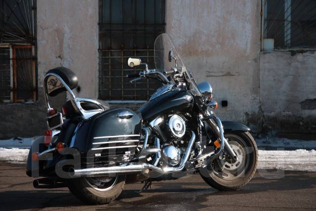 VN 1600Чисто внешне — это всё тот же старый добрый «Вулкан», чем-то неуловимо напоминающий классические модели Harley-Davidson. Кстати, по сравнению с Vulcan 1500, у Kawasaki VN 1600 есть всего три модели — классическая, туристическая, под названием Nomad, и Mean Streak, которому у нас посвящена отдельная статья. Классическая версия — это просто круизер без какого-либо обвеса, а на VN1600 Nomad в базовую комплектацию входят пластиковые кофры, ветровое стекло, спинка пассажира и разведённый на две стороны выхлоп.