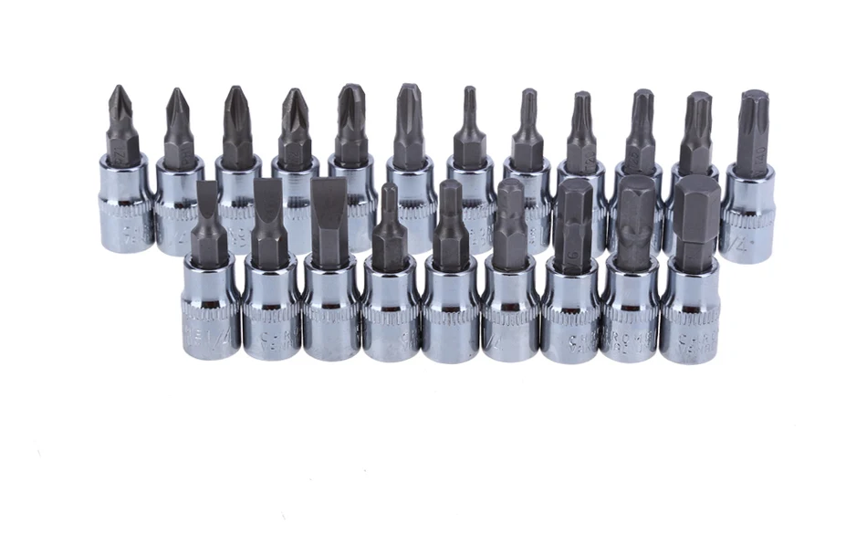 21 шт. DR бит розетки:РН 1, 2, 3, PZ 1 2, 3; FD 4, 5.5, 7; HW 3, 4, 5, 6, 7, 8, T 10, 15, 20, 25, 30, 40